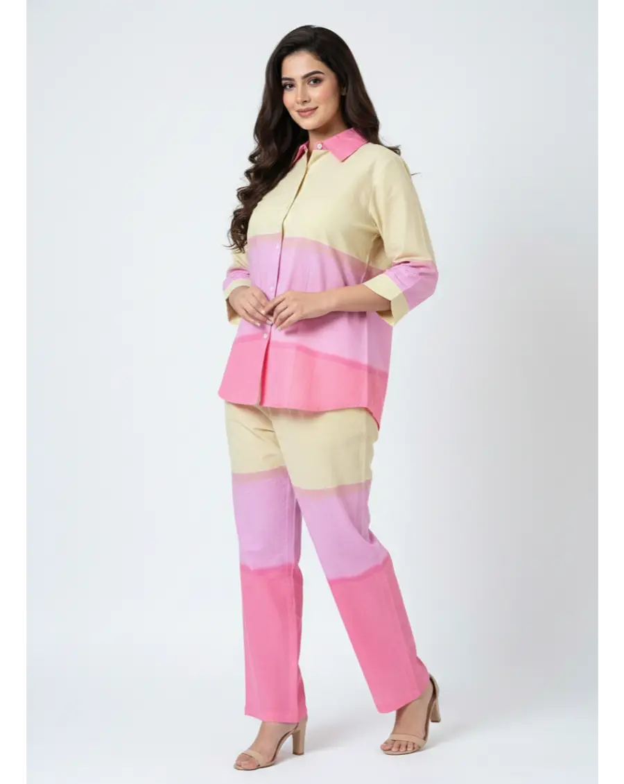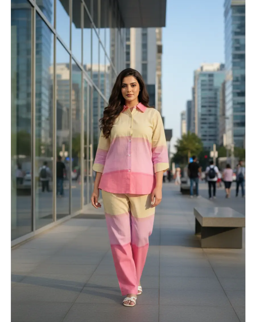 Cambric Cotton Breathable Ombre Pink Co-ord Set