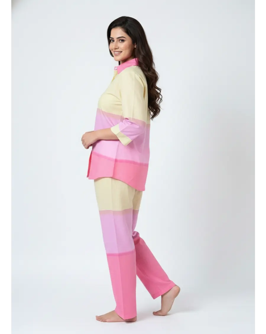 Cambric Cotton Breathable Ombre Pink Co-ord Set - M