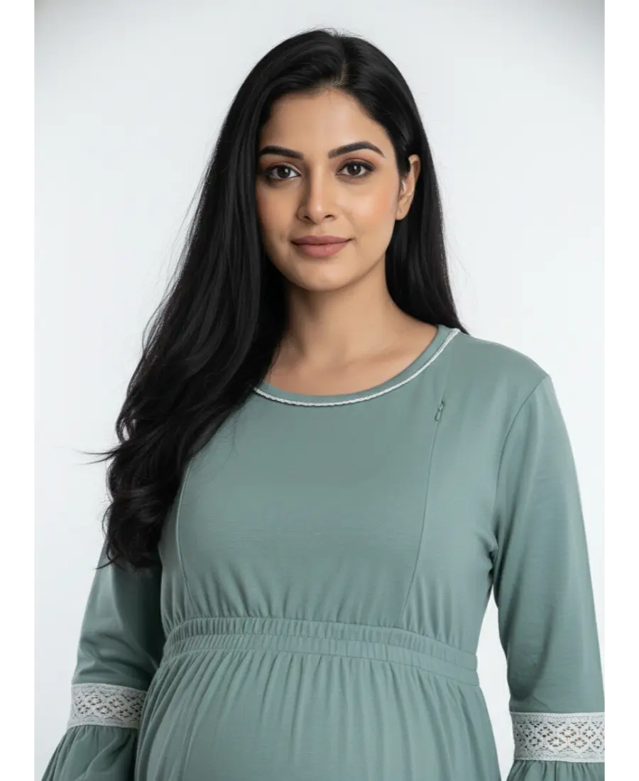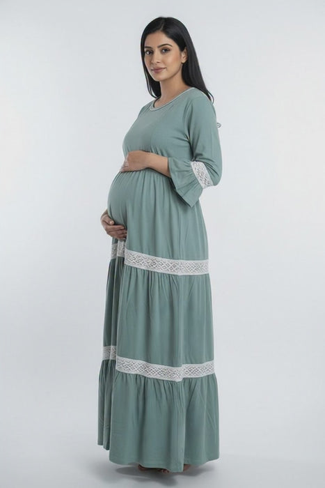 Women 3/4th sleeves Ultra Soft Cotton Maternity Maxi-Sage Green - M