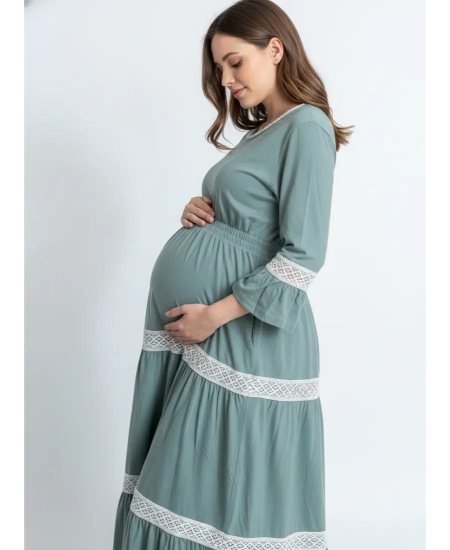 Women 3/4th sleeves Ultra Soft Cotton Maternity Maxi-Sage Green