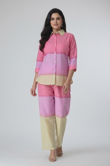 Cambric Cotton Breathable Ombre Co-ord Set- Pink - M