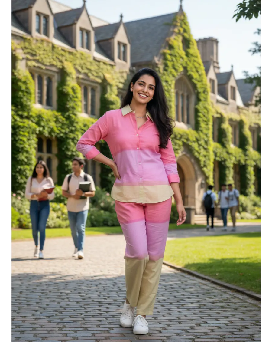 Cambric Cotton Breathable Ombre Co-ord Set- Pink