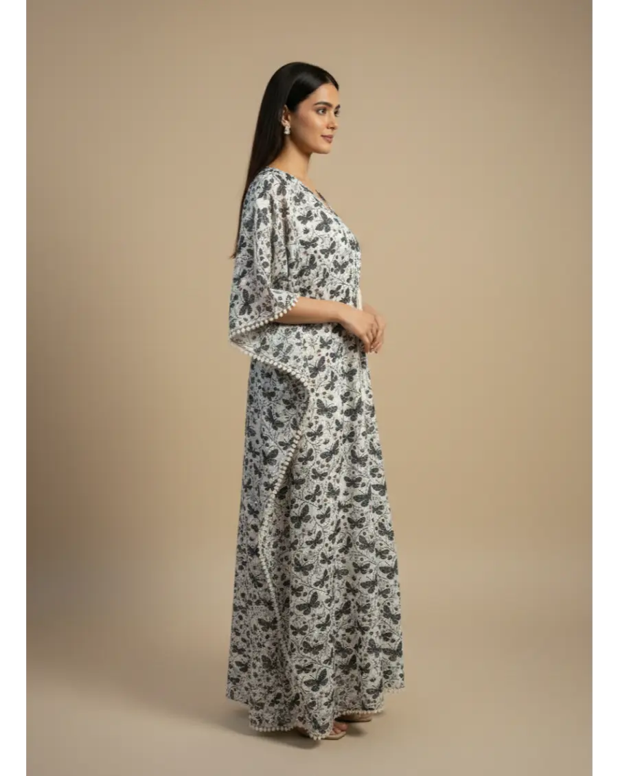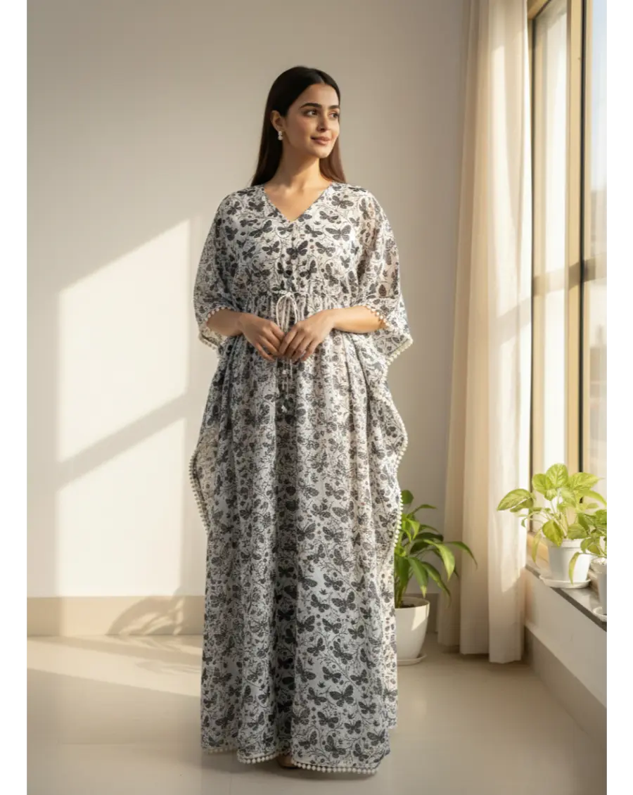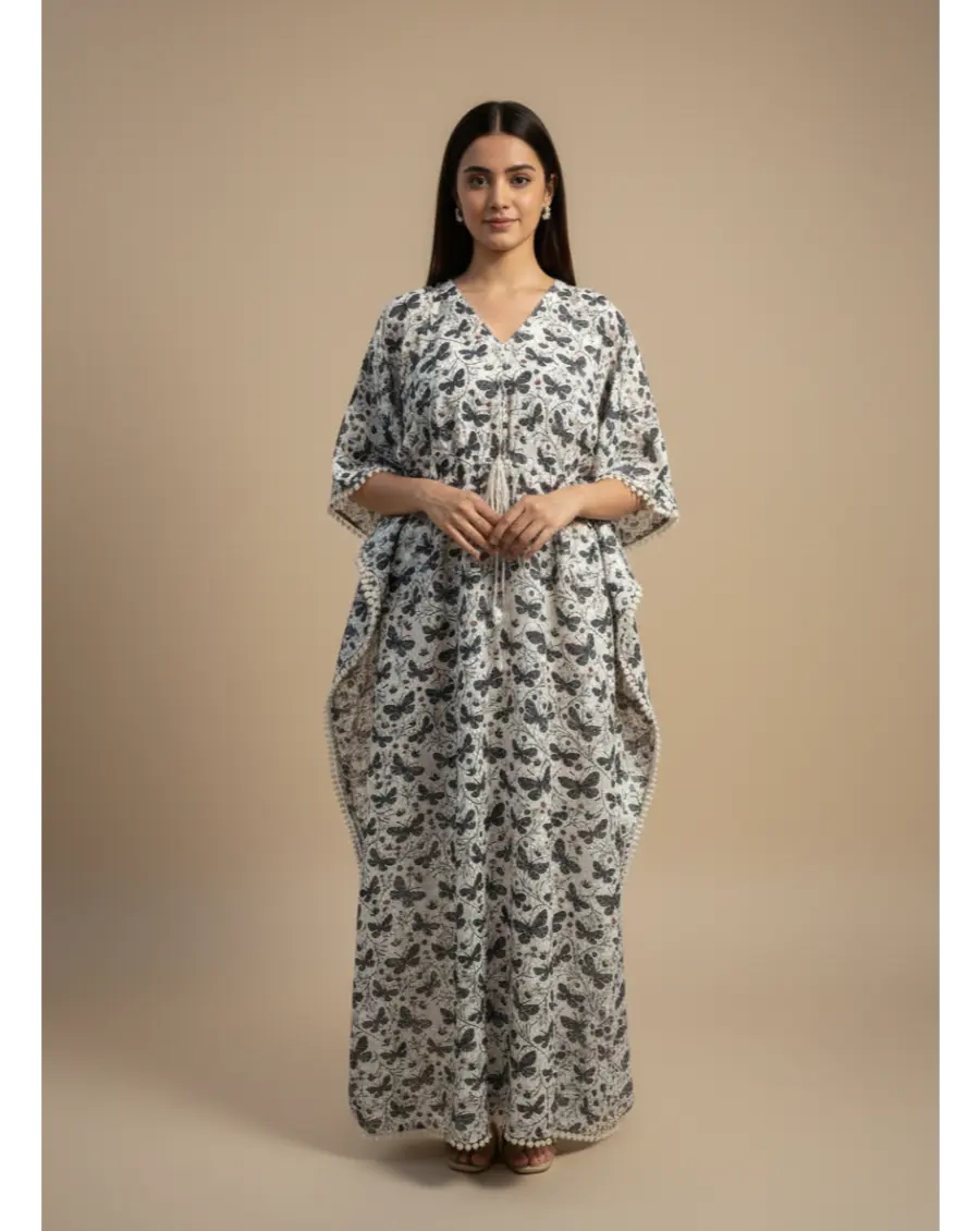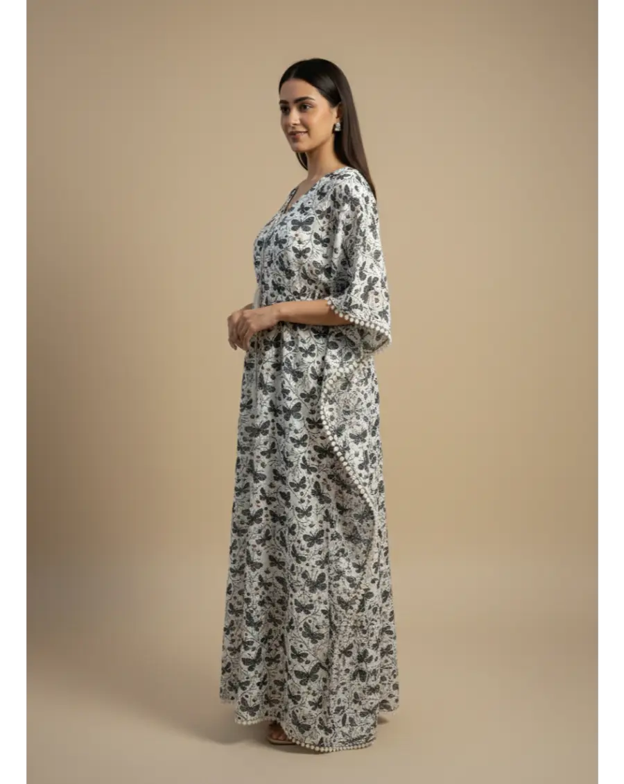 Combed Cotton Maternity Butterfly Print Long Kaftan Maxi