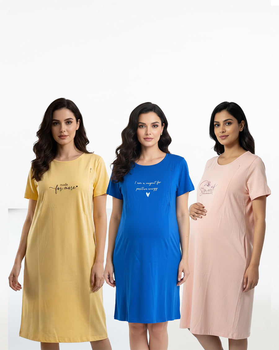 Crafted from ultra-soft, breathable fabric, it drapes gently over your baby bump without clinging, offering a relaxed fit that keeps you cool all day. Once the baby arrives, the invisible zippers on both sides provide discreet and hassle-free nursing access, making feeding time easy whether you are at home or on the go. The soothing shade adds a touch of freshness to your maternity wardrobe.
